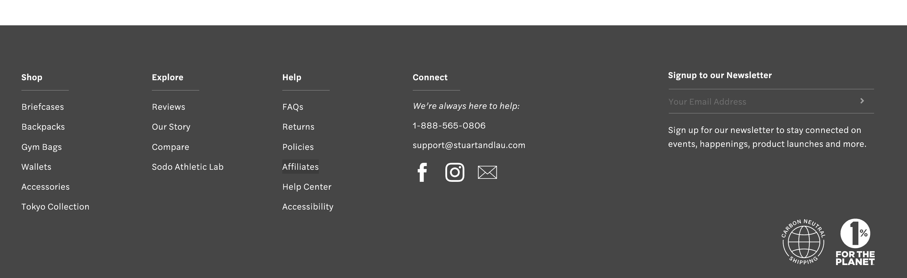 Our Affiliate Program is linked in the footer of our website, within our Help Menu, shown below and also linked here, so you can access it easily anytime you need to reference back to it.