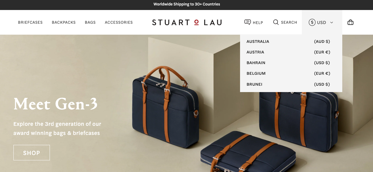 We ship to approximately 30+ countries around the globe. The best way to check if we ship to your country is to check the currency menu in the header of our website, shown here: